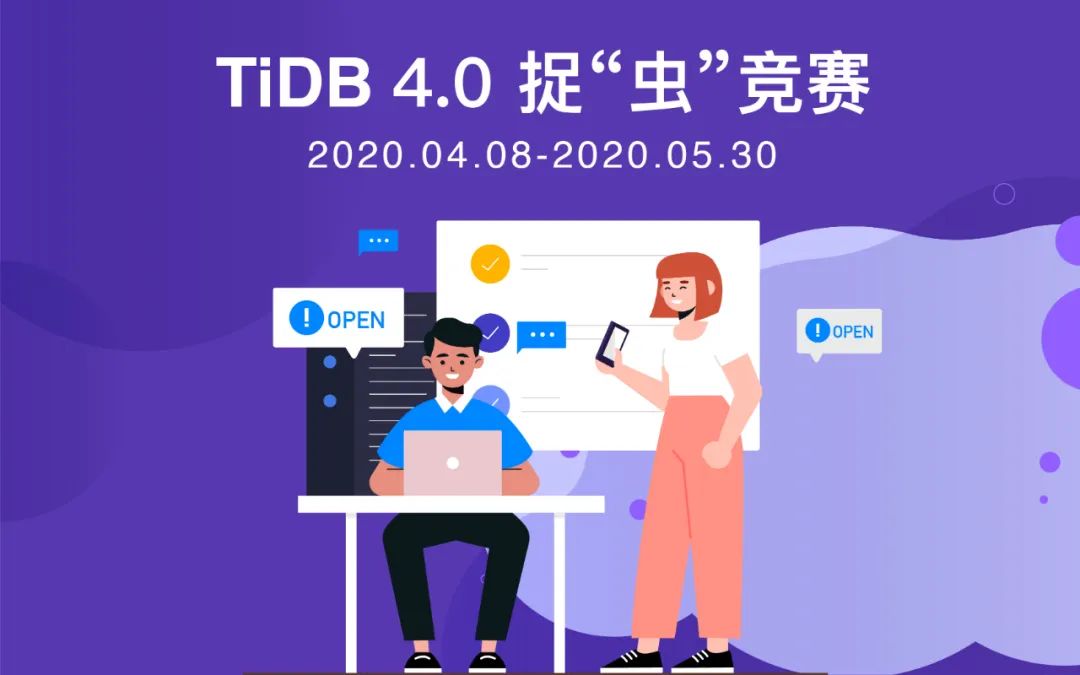 TiDB 4.0 捉“虫”竞赛来袭,本次竞赛将持续到 5 月 30 日,邀请社区小伙伴参与一起为 TiDB 全球社区建设添砖加瓦,让 TiDB 新版本给大家带来更好的体验!我们将按大家发现的 bug 等级或提交的体验报告给予相应积分,积分可以兑换 TiDB 限量周边、PingCAP Education 培训机会等多项奖品。