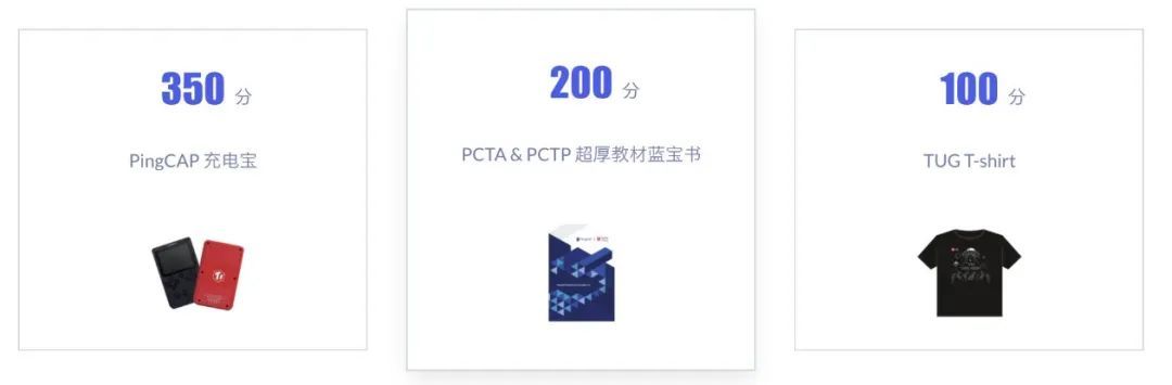 TUG 卫衣、蓝宝书、PCTA 考试券等。