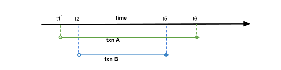 这个时间点被事务 B 已经更新了,但是因为 TiDB 乐观事务只有在事务 commit 时才检测冲突,所以时间点t4