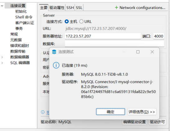server tidb-87 172.23.57.87:4000 check inter 2000 rise 2 fall 3 # 检测 4000 端口,检测频率为每 2000 毫秒一次。如果 2 次检测为成功,则认为服务器可用;如果 3 次检测为失败,则认为服务器不可用。