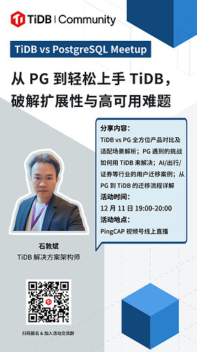 报名活动 & 加入活动微信群: https://pingkai.cn/forms/f/12-11-tidb-vs-pg-meetup
