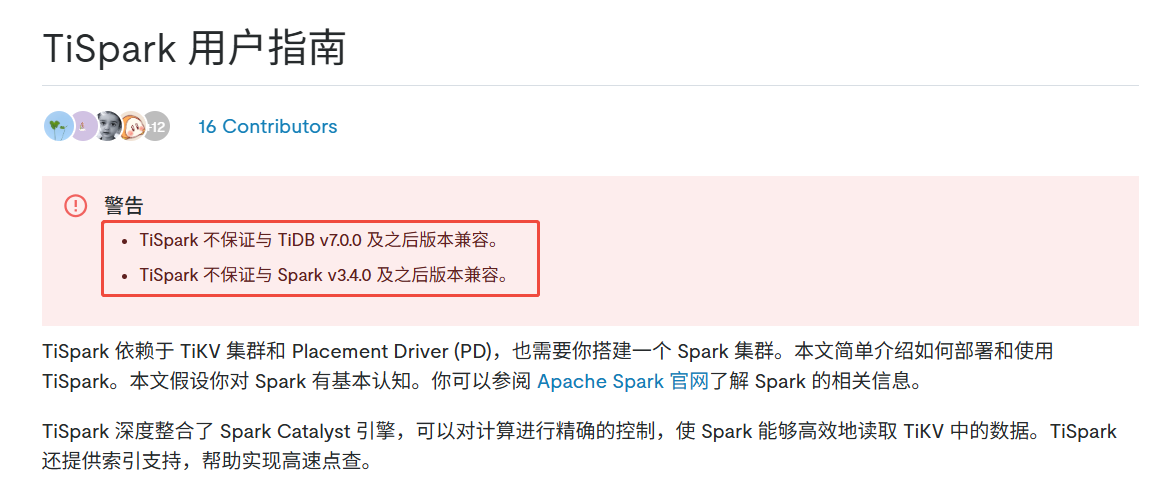 https://docs.pingcap.com/zh/tidb/stable/tispark-overview/#tispark-用户指南