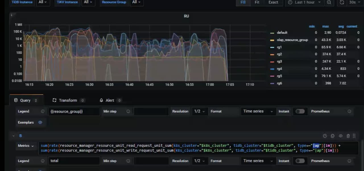 不要用 tiflash 的面板看,用截图中编辑 ru 面板的表达式把 tp 改成 ap 来看,或者新增一个 ap 来看,是不是当时 ru 耗尽了。