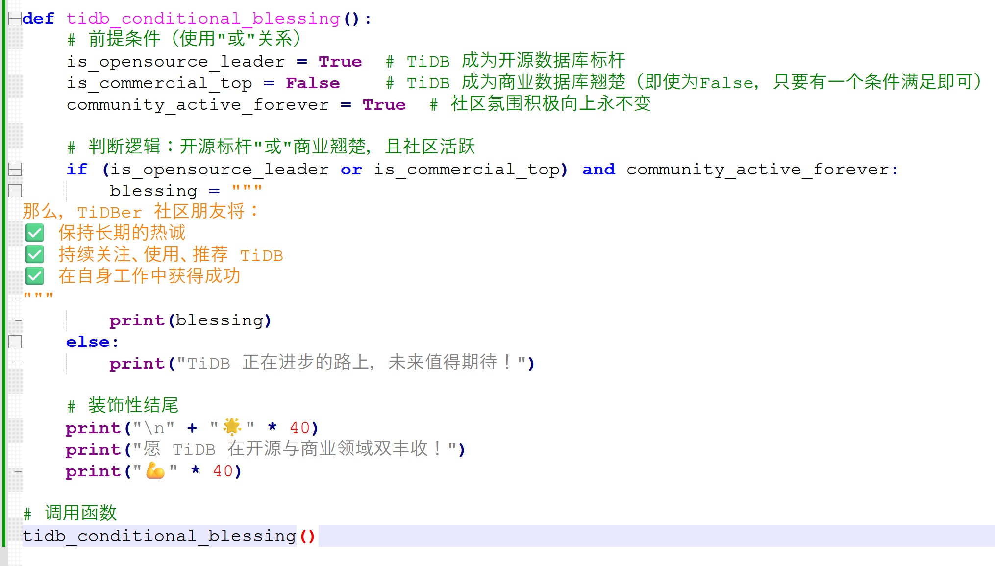 【给 TiDB 社区小伙伴们送上有意义的代码祝福语吧!】